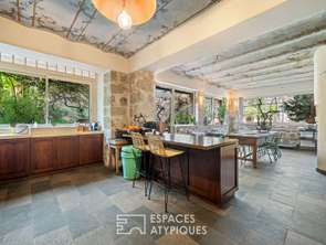 Située au bout d'une impasse, à seulement quelques minutes du littoral, découvrez « Aux deux sources », une propriété de charme datant de 1910. Véritable havre de paix, cette demeure familiale a su traverser le siècle en préservant son authenticité tout en offrant de généreux volumes. Édifiée sur un terrain de plus de 2 500 m², la propriété vous plonge dans un univers botanique luxuriant : agrumes, palmiers et bananiers. Une terrasse de 50 m², ombragée par une tonnelle centenaire prend place, idéal pour les réceptions estivales. Les volumes intérieurs chaleureux et authentiques, invitent à la convivialité. Le rez-de-chaussée se compose d'espaces de vie spacieux et chargés d'histoire. Une cuisine / salle à manger de plus de 45 m² est le véritable coeur battant de la maison, avec ses pierres apparentes, sa cheminée à foyer ouvert et une remarquable fresque d'époque au plafond. Un salon de 40 m², accessible par une porte Art Déco en fer forgé. Cet espace cosy dispose d'une seconde cheminée et d'un coin piano. L'étage est dédié au confort familial, avec un vaste palier de 17 m² faisant office de bibliothèque, ouvrant sur un balcon avec vue sur le jardin. Une suite parentale de 25 m² comprenant une grande salle de bain privative et un accès direct à des combles aménagés avec bureau et dressing. Espace enfants avec deux chambres supplémentaires, une salle d'eau et une pièce de jeux nichée sous les toits. Et pour compléter les lieux, une magnifique cave voûtée en pierre de plus de 20 m² offre un potentiel unique pour une salle de billard, un bar à vin ou un atelier d'artiste. Côté technique, installation de 9 panneaux solaires en 2021. Facilité de stationnement au sein de la propriété et en extérieur. Une maison de caractère au fort potentiel, alliant sérénité absolue et proximité […] Voir l’annonce immobilière >>