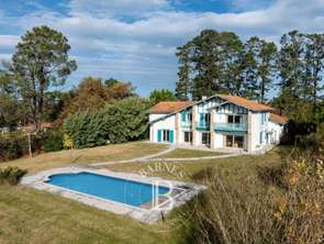 Située dans un environnement très calme, résidentiel et verdoyant, tout proche du Golf et de la mairie d'Arcangues, cette propriété sur un parc arboré de plus de 6500 m², offre au sud une vue à 180° sur les montagnes et la campagne basque.Construite dans les années 2000, la villa d'architecture traditionnelle, très lumineuse, d'environ 310 m² habitables est agencée en 3 espaces distincts et complets qui pourraient être réunis : un espace propriétaire, un espace maître et un espace conciergerie. Elle dispose aujourd'hui de 3 séjours, de 6 chambres dont une de plain pied, de 5 salles de bains et de 3 cuisines. Magnifiques vues montagnes.Une piscine […] Voir l’annonce immobilière >>