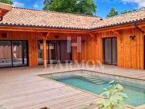 Dans l’intimité d’un écrin naturel, où les pins murmurent et la lumière glisse entre les feuillages, se dévoile une maison en bois d’exception, pensée comme une invitation au calme, à l’élégance, et à l’art de vivre sur le Bassin.Dès l’entrée, les volumes généreux et les lignes épurées insufflent une sensation d’harmonie. Le séjour lumineux, traversé de baies vitrées, s’ouvre avec poésie sur une vaste terrasse boisée, une piscine élégante, et un jardin paysager soigneusement dessiné.La cuisine, entièrement équipée, conjugue fonctionnalité et esthétisme. Deux chambres, chacune avec leur salle d’eau, accueillent famille ou invités avec confort. En rez-de-chaussée, une suite parentale intimiste prolonge l’expérience, avec un accès direct sur l’extérieur, pour des réveils baignés de nature.À l’étage, une seconde suite parentale prolonge le luxe en toute discrétion, accompagnée d’une mezzanine à aménager selon vos envies : bureau feutré, bibliothèque, ou salon privé.Les prestations haut de gamme s’expriment jusque dans les moindres détails :– Garage fermé,– Terrain entièrement clôturé par une palissade en bois,– Portail électrique, volets roulants,– Espace bar au bord de la piscine,– Terrain de pétanque, pour vos douces fins de journée estivales. […] Voir l’annonce immobilière >>