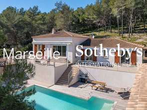 Exclusivité - À vendre aux portes de Cassis, villa contemporaine de 215 m² sur un vaste terrain de 4 000 m² avec piscine. Cette propriété nichée dans un écrin de verdure vous séduira par son environnement rare et sa quiétude absolue, à l'abri des regards.