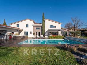 au cœur d’un environnement résidentiel recherché et sans aucun vis-à-vis, cette élégante maison familiale développe 240 m² habitables sur deux niveaux, implantée sur une parcelle arborée de 2 000 m².
