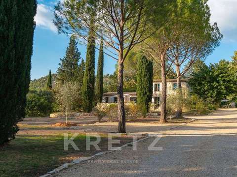 Dès l’arrivée, le ton est donné. Implantée sur un terrain paysager de plus de 5 000 m², bordée de pinède et d’essences méditerranéennes, la propriété offre un cadre confidentiel, préservé, où le calme et la lumière deviennent un véritable luxe au quotidien.