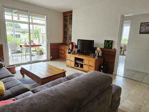 Située en impasse découvrez de plain-pied une grande entrée sur pièce de vie lumineuse de 42 m² avec cuisine ouverte équipée (2016), 3 chambres, salle de bains avec douche et baignoire, WC séparés, cellier et véranda donnant sur le jardin.
