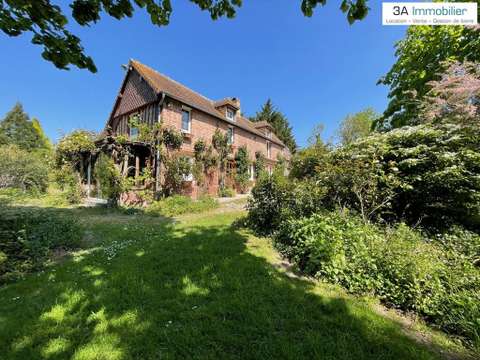 Très Belle Propriété typique du Pays d'Auge, composée de 2 Habitations, dépendances, paddock, édifiée sur un parc superbement arboré et fleuri de plus de 6000 m², bordée par un cours d'eau.