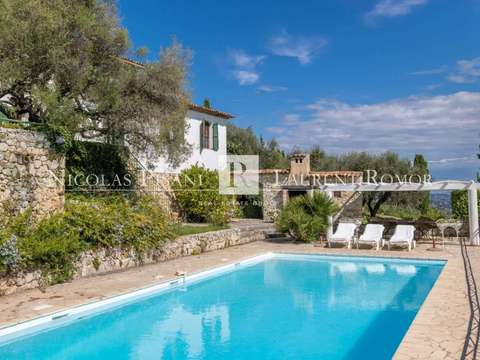Dans un secteur résidentiel calme et recherché, charmante villa de 110 m² bénéficiant d’une vue dégagée sur la vallée avec aperçu mer, implantée sur un terrain paysager de 1 320 m² complanté d’oliviers, vignes et arbres fruitiers.