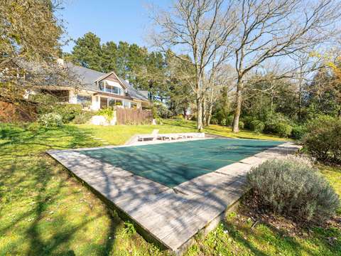 La propriété s'étend sur un magnifique terrain arboré de 3 000 m², véritable écrin de verdure. Une grande terrasse surplombe le jardin et mène à une piscine exceptionnelle de 5 x 10 m entretien automatique (électrolyse de sel) avec volet électrique, chauffée par pompe à chaleur.