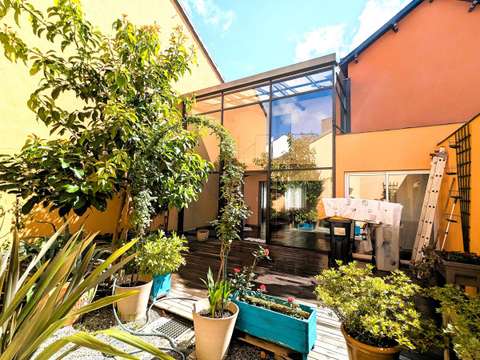 Dès l’entrée, vous serez séduits par sa pièce de vie traversante de plus de 50 m², baignée de lumière grâce à ses murs et plafonds en verrière qui ouvrent sur un patio végétalisé, intime et sans vis-à-vis. Un lieu unique, idéal pour profiter d’instants de détente en toute tranquillité. La cuisine ouverte, aménagée et équipée, s’intègre harmonieusement à l’espace. Une buanderie, un bureau, une salle de bains et des WC complètent le rez-de-chaussée.
