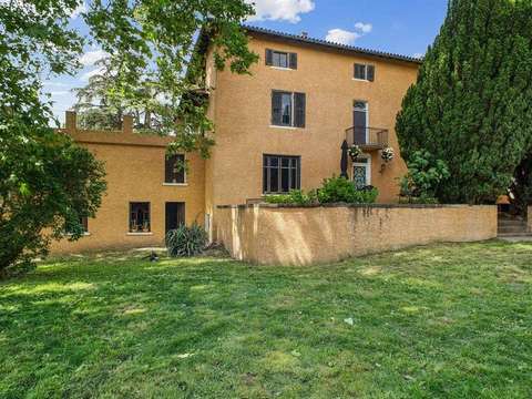 Implantée sur un jardin paysager d’environ 1 500 m², la demeure bénéficie d’une vue imprenable sur les monts du Beaujolais et les monts d’Or. L’extérieur offre de vastes terrasses, une piscine récente avec couverture mobile permettant la baignade du printemps à l’automne, deux fontaines d’époque, un puits de 8m et un carport.