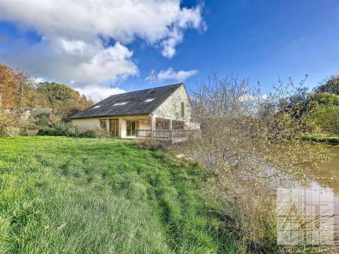 Agence THOM vous présente cette agréable maison construite en 2005, nichée dans un environnement campagne avec une vue dégagée, implantée sur un terrain de 18 546 m² agrémenté d’un plan d’eau privé de 850 m². L’accès à la propriété s’effectue par un droit de passage et l’environnement reste calme, malgré la présence de voisins à proximité. La maison offre un rez-de-chaussée entièrement accessible aux personnes à mobilité réduite, comprenant une cuisine ouverte aménagée et équipée s’ouvrant sur un jardin d’hiver lumineux, une chambre avec placards, une salle d’eau avec WC ainsi qu’une buanderie avec WC. À l’étage, une vaste mezzanine avec rangements peut être aménagée en chambre ou en espace de vie supplémentaire et dessert deux autres chambres, dont une suite parentale avec salle d’eau attenante, complétée par une salle de bains indépendante et des WC séparés. La terrasse couverte exposée plein sud permet de profiter pleinement de la vue sur le plan d’eau, le jardin et la campagne environnante. Chauffée par radiateurs électriques, équipée de double vitrage PVC et d’une fosse septique conforme, cette maison parfaitement entretenue offre un cadre de vie confortable et paisible. Classe énergie : C, Classe climat : A. Montant moyen estimé des dépenses annuelles d'énergie pour un usage standard, établi à partir des prix de l'énergie de l'année 2021 : entre 1770 € et 2440 €. Les informations sur les risques auxquels ce bien est exposé sont disponibles sur le site Géorisques : www.georisques.gouv.fr. […] Voir l’annonce immobilière >>