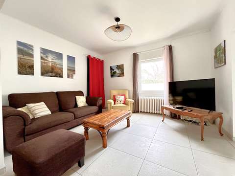 Elle se compose au rez-de-chaussée d'une entrée desservant une double pièce de vie avec cuisine ouverte aménagée/équipée, le tout donnant sur une véranda et sur son jardin. Nous retrouvons également une chambre de plain-pied avec salle de bains.