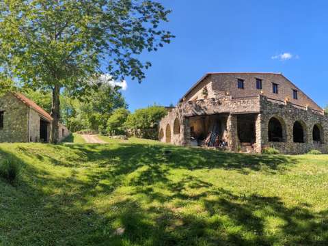 Dans une forêt de 5 hectares, ce Mas traditionnel en pierre jaillit d'une magnifique clairière. Il se compose de trois bâtisses qui séduiront par leur caractère authentique.