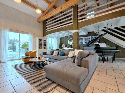 Pièce de vie de 80 m2 avec ouverture directe sur jardin et piscine