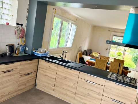La maison se compose d'une cuisine moderne aménagée & équipée, ouverte sur un séjour lumineux avec accès direct aux 2 terrasses , soit une belle pièce de vie de 42m2 !!!