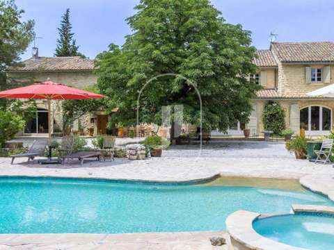 Magnifique demeure provençale à vendre entre l'Isle-sur-la-Sorgue et Le Thor. Offrant environ 444 m², cette propriété de qualité repose sur un terrain clos d'environ 3000 m² agrémenté de remarquables arbres fruitiers. La propriété se compose d'un charmant Mas d'environ 216 m² et d'une maison principale attenante d'environ 227 m². La première maison vous accueille avec 5 chambres, dont trois disposent de leurs propres salles d'eau, suivi d'une quatrième salle d'eau indépendante. La cuisine ouverte, le séjour et la salle à manger sont illuminés par de charmantes et grandes baies vitrées, créant ainsi un espace lumineux et agréable. De plus, nous retrouvons une cave à vin exceptionnelle et climatisée ainsi qu'un local technique/chaufferie. La deuxième maison attenante offre une cuisine ouverte ainsi qu'une arrière cuisine donnant sur une première salle à manger, suivie d'une grande pièce de vie comprenant une salle à manger et un salon avec un poêle à bois. Côté nuit, nous retrouvons un bureau et quatre chambres, dont deux agrémentées de leurs propres salles d'eau. Une salle d'eau complète cet étage, offrant un confort optimisé. Le mas est caractérisé par ses plafonds provençaux avec ses poutres apparentes, lui conférant un charme authentique et typique de la région. Les extérieurs vous séduiront par ce jardin paysagé, sublimé par une superbe piscine d'environ 12x6m accompagnée d'un jacuzzi chauffé, idéal pour des moments de détente absolue. Enfin, cette propriété d'exception comprend également un atelier, ainsi qu'un abri voitures. Idéalement située à proximité de l'Isle-sur-la-Sorgue, cette ville pittoresque du Vaucluse vous invite à vivre la véritable expérience provençale en vous promenant dans ses marchés animés, en découvrant ses charmants petits commerces et ses nombreux antiquaires. Propriété à vendre par l'agence immobilière […] Voir l’annonce immobilière >>