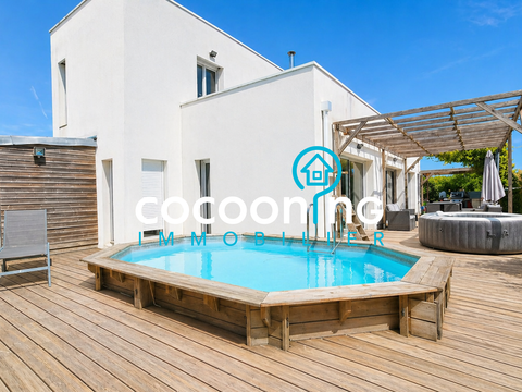 À l’extérieur, le jardin clos et sans vis-à-vis propose un cadre agréable avec une piscine semi-enterrée, un espace dédié au jardinage, ainsi qu’une cour entièrement enrobée à l’avant, permettant de stationner plusieurs véhicules en toute simplicité.