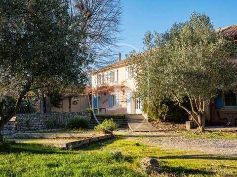 Grand Mas provençal ancien à vendre à Visan, avec piscine et vues dégagées Situé dans l'enclave des Papes, ce grand mas provençal du 18ème siècle en pierre enduite, restauré et agrandi entre 1999 et 2001, bénéficie d'un cadre de campagne calme et lumineux, à deux pas d'un village avec commerces. La propriété, construite sur un terrain de 10 760 m², développe une surface d'environ 360 m² et offre une piscine de 5 m x 10 m avec vastes plages dallées, idéale pour profiter pleinement du soleil provençal. Les prestations intérieures de ce mas à Visan Le rez-de-jardin dispose d'un salon chaleureux avec poêle à bois, d'une cuisine à vivre conviviale avec îlot central mobile, d'une arrière-cuisine fonctionnelle, d'un bureau ou chambre lumineuse, ainsi que d'espaces complémentaires tels qu'une salle à langer et une chambre d'hôte avec salle de bain et accès terrasse. Un garage spacieux et une cave complètent ce niveau, offrant confort et praticité. Le premier étage se divise entre la partie privée, composée de trois chambres élégantes et confortables avec salles de bain attenantes et accès à une terrasse panoramique, et la partie B&B, comprenant cinq chambres supplémentaires, dont quatre avec salle de bain privative et une avec accès à une salle de bain partagée. Les chambres B&B disposent de balcons ou terrasses, parfaites pour accueillir des invités. L'ensemble des espaces est lumineux, chaleureux et idéalement conçu pour la vie familiale ou l'activité de chambres d'hôtes. Les extérieurs et atouts de la propriété Les extérieurs offrent un cadre provençal agréable avec plusieurs terrasses, une grande terrasse Sud avec tonnelle, un terrain arboré avec murets en pierre et fer forgé, un terrain de boule et un jardin aménagé avec fontaine et petit étang. La terrasse couverte avec cuisine d'été et la piscine complètent cet espace convivial, offrant un environnement apaisant et verdoyant. Visan, un cadre de vie provençal Situé au cœur de la Provence, Visan est un village typique […] Voir l’annonce immobilière >>