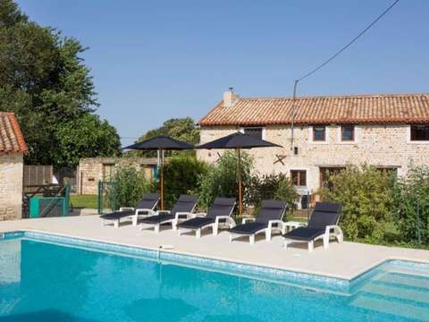 En complément, lamaison principale, entièrement rénovée avec des prestations haut de gamme, offre de beaux volumes et un confort optimal. Elle se compose d’un vaste espace de vie ouvert avec cuisine et salon, d’un second salon indépendant, d’une buanderie et de WC. Le confort thermique est assuré par un chauffage au sol, une pompe à chaleur et deux poêles à bois. À l’étage, une grande mezzanine dessert quatre chambres spacieuses, dont trois avec salle d’eau privative et une salle de bains familiale. À l’extérieur, la maison bénéficie de sa piscine chauffée privée, idéale pour préserver l’intimité des propriétaires.