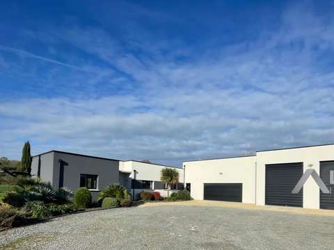Audrey Léger Kovacic pour LEKYP IMMOBILIER REDON vous propose cette belle maison contemporaine de 2020 aux volumes généreux, sur un terrain clos de 4 000 m² environ avec garages, D'une surface habitable de 165 m² de plain-pied, elle se compose d'un salon/séjour de 65 m², d'une cuisine aménagée/équipée, d'une suite parentale 30m² environ, deux chambres dont une avec salle d'eau privative, WC. Grande pièce technique équipée d'une salle d'eau et WC. Matériaux haut de gamme, aucun travaux à prévoir.