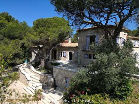 Nichée au sommet d’une colline au cœur d’une pinède, cette propriété d’exception s’étend sur plus de 1,5 hectare de terrain arboré de pins majestueux et d’oliviers méditerranéens. Située dans un quartier résidentiel calme et très prisé, elle bénéficie d’une vue dégagée et d’un cadre naturel préservé, propice à la détente et à l’art de vivre.