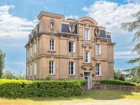 La maison bourgeoise XIXe d'une surface de 552m² est répartie sur 4 niveaux (un rez-de-jardin, un rez-de-chaussée et deux étages) épouse une belle architecture de type castelet offrant des terrasses et des vues sur le parc et le village environnant.