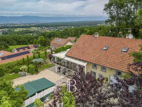 À seulement 2 km de la frontière suisse, dans un environnement calme et préservé, cette ancienne ferme vaudoise construite entre 1873 et 1875 séduit dès les premiers instants par son authenticité et son caractère unique.Rénovée avec soin il y a une trentaine d’années, elleincarne l’équilibre parfait entre le charme de l’ancien et le confort contemporain. Nichée à 600 mètres d’altitude, elle offre un panorama exceptionnel à 180° sur le bassin genevois et le lac Léman, véritable tableau vivant à admirer au fil des saisons.Au cœur d’un terrain de 3 100 m² en zone constructible — une opportunité rare pour ceux qui souhaitent imaginer d’autres projets — la maison s’ouvre sur de beaux volumes baignés de lumière. Dès l’entrée, l’atmosphère est chaleureuse, empreinte d’histoire et d’élégance discrète. Les espaces de vie s’articulent autour d’une magnifique véranda, véritable poste d’observation sur la nature environnante, tandis que les chambres invitent à la sérénité, chacune avec son ambiance propre.La suite parentale, avec son dressing, sa salle de bains et son sauna, est un havre de calme. Un grand espace bureau permet d’envisager une activité professionnelle ou artistique à domicile, dans un cadre inspirant. Les combles, eux, attendent vos projets pour se transformer selon vos envies.À l’extérieur, la propriété entièrement close propose […] Voir l’annonce immobilière >>