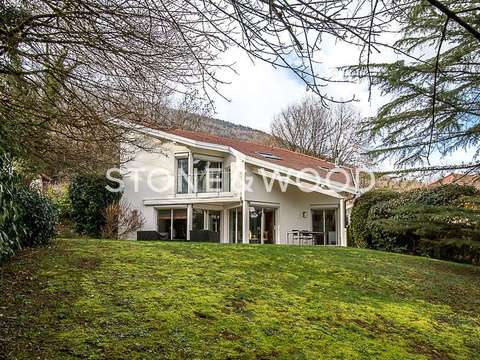 Sur les hauteurs d'Échenevex, au pied du massif du Jura, maison d'architecte nichée au cœur d'un écrin de verdure et de sérénité, à seulement 15 minutes des douanes de Meyrin et Ferney-Voltaire, 20 minutes de l'aéroport international de Genève et 5 minutes du CERN. Alliant élégance et confort, elle offre des volumes généreux, baignés de lumière, et des magnifiques vues sur le bassin lémanique et la chaîne des Alpes.
