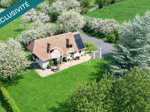 Au fond d'une impasse résidentielle, en plein cœur du Pays d'Auge derrière un grand portail blanc se cache l'accès à un havre de paix; Une maison contemporaine de type Normande (1992) sur un terrain urbanisé de 2500m²; Je précise, car pour ce qui est du reste et disponible en plus du prix (40000€ FAI), ce sont des terres agricoles qui jouxtent la maison soit environ 3 hectares; Ces dernières accueillent quelques chevaux à ce jour; Ceux de la maison bien entendu ! Et c'est là où je veux en venir; Je ne compte plus les demandes où les propriétaires d'équidés cherchent un logis pouvant les accueillir ensemble. Donc, selon vos besoins, vous choisirez...:)