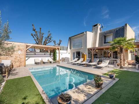 Idéalement située dans le quartier Charentonneau de Maisons-Alfort à proximité immédiate des commerces, écoles, et transports Métro ligne 8 (Maisons-Alfort - Stade), l'agence Barnes Val de Marne vous propose en exclusivité une maison de 6 pièces 4 chambres avec jardin et piscine chauffée de 242.58 m² habitables.Elle se compose comme suit : Au rez-de-jardin, une entrée, une cuisine équipée et aménagée, un double séjour salle à manger donnant sur le jardin et la piscine chauffée, un toilette invité.Au premier étage, une suite parentale avec salle d’eau et toilette, trois chambres, une salle de bain avec douche et toilette, une buanderie. […] Voir l’annonce immobilière >>