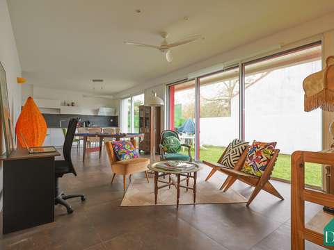NANTES - A proximité du golf et des commerces du Cardo, maison contemporaine comprenant une jolie pièce de vie; ainsi que trois chambres. Jardin et place de stationnement extérieur.