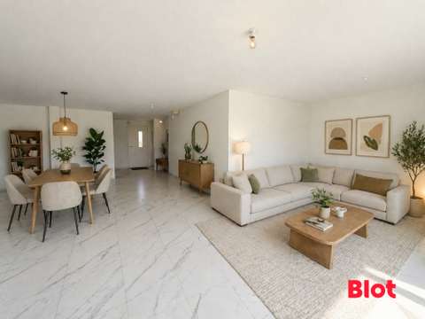 Le salon-séjour sur parquet bénéficie d'une très belle lumière traversante, ce qui crée un espace de vie convivial pour partager des moments en famille.