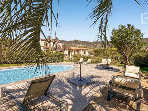 À l'extérieur, le terrain a été aménagé avec un soin tout particulier pour offrir un véritable art de vivre disposant d'un terrain multisport (tennis, football), putting green, superbe piscine chauffée avec filtration au sel.