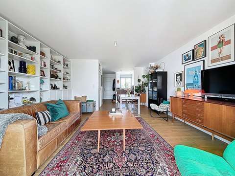 Très belle pièce de vie lumineuse salon-salle à manger avec cuisine ouverte toute équipée, l'ensemble d'une surface environ 75 m2 donnant sur terrasse avec
