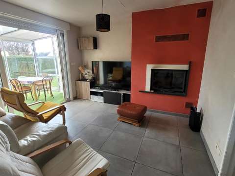 D'une surface habitable d'environ 48 m², la maison s'ouvre sur un séjour véranda lumineux qui donne, à gauche, sur une cuisine séparée puis à l'étage sur une chambre mais aussi sur une salle d'eau avec WC et à droite sur 2 chambres en enfilade.