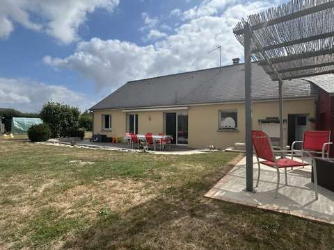 Au rez-de-chaussée : une entrée sur séjour-salon (poêle à pellets), cuisine aménagée et équipée ouverte, couloir, trois chambres (placards), salle d'eau, wc et arrière-cuisine.