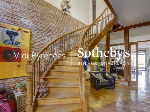 En exclusivité chez Sotheby's Midi Pyrénées, Au coeur de ce joli village à 20 min de la rocade nord toulousaine, cette maison de village de 260M2 environ est un vrai cocon! L'entrée se fait par un joli patio ombragé, et donne sur une magnifique entrée dont l'escalier a été réalisé par Les Compagnons du Devoir. Le séjour, lumineux grâce à ses baies vitrées, sera aussi chaleureux en hiver avec sa grande cheminée, que l'été avec l'accès à la piscine. La cuisine est séparée et bien équipée. Au 1er étage, trois chambres dont une en suite, un beau dressing, enfin au 2ème étage, un joli plateau de 60m2, accolé à un grenier de 32m2, aménageable à votre souhait, les attentes d'eau étant déjà en place.