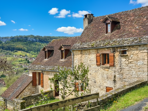 Au cOEur de la Vallée de la Dordogne, surplombant l'un des 'Plus Beaux Villages de France', cette propriété n’est pas qu’une adresse : c’est un poste d'observation privilégié. Sur un terrain de 2 320 m², cet ensemble en pierre calcaire semble suspendu entre ciel et terre, là où le calme devient un luxe absolu.