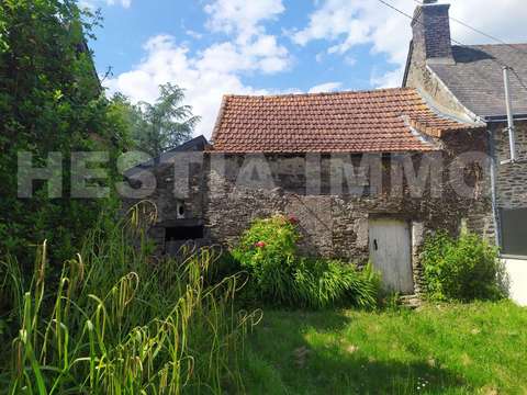 CASSON - LE PONT : Bâtiment en pierre avec une pièce avec un four à pain, l'ensemble à rénover intégralement d'environ 55 m², sur une parcelle de 535 m² avec jardin arboré.