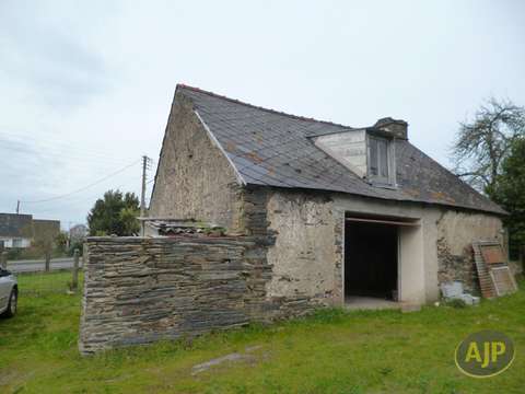 Négociable ! Dans hameau à 8 mns du bourg de GUEMENE ; maison de bonne construction offrant de plain pied un salon/séjour avec cheminée insert , cuisine, 2 chambres, salle de bain, wc. Grenier aménageable. 58 m2 divisé en 2 garages. Terrain, le tout sur 627 m2