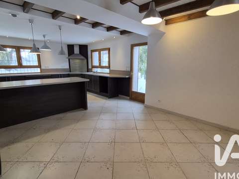La maison se compose au rez-de-chaussée d'une cuisine équipée ouverte sur une salle à manger de 32 m2, d'un cellier, d'un salon de 22m2, d'une buanderie, d'un WC et d'une cave.