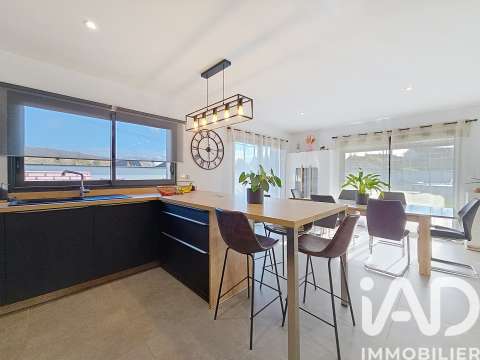 L'intérieur se distingue par une pièce de vie spectaculaire de 59 m², baignée de lumière naturelle grâce à ses larges ouvertures. La cuisine, véritable espace de partage, est équipée de nombreux rangements et d'un îlot central convivial. Ce séjour s'ouvre sur une vaste terrasse de 60 m² offrant un aperçu privilégié sur la chaîne des Pyrénées.