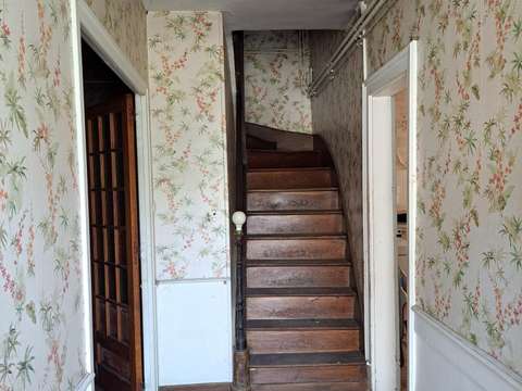 L' escalier en très bon état vous permet d 'accéder aux 5 chambres réparties sur 2 niveaux et le grenier.