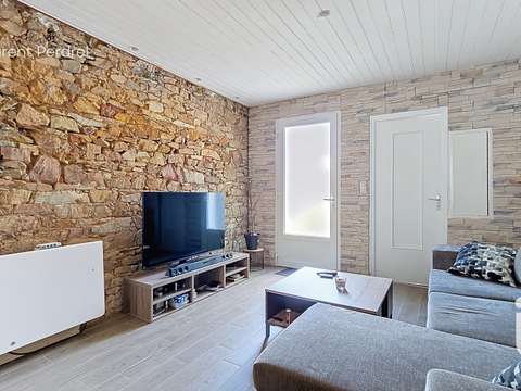 iad France - Laurent Perdrel vous propose: Maison de ville construite en pierres sous ardoises naturelles, sur une parcelle de 77m². Rénovée en 2023 (isolation, ouvertures, électricité, chauffage...) . Surface habitable : 48m².