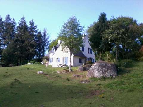 Particulier vend maison néo Bretonne de 1986, propre mais déco à remettre à votre goût (peinture, tapisserie), prévoir 3,4 volets à refaire. Surface habitable 150m2, avec gîte et garage attenant. Le tout sur un terrain de 8,5 hectares, composé de bois, une partie en herbe, un verger (pommiers et noyers), de chemins de randonnée et d'une rivière traversante.