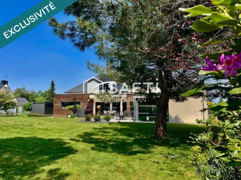 Coup de cœur assuré pour cette superbe maison d'architecte nichée au cœur d'un environnement paisible et verdoyant situé à proximité des commodités de Questembert (petite ville riche en infrastructures avec une gare) à seulement 25 minutes de Vannes et 20 min des plages. Construite en 2010 avec des matériaux de qualités, des volumes généreux et une luminosité exceptionnelle.