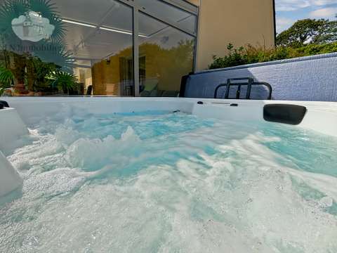 Au rez-de-chaussée, une lumineuse pièce de vie de 50m2 avec une magnifique véranda climatique dernière génération de plus de 19 m2 donnant dans le jardin et la terrasse avec son SPA et le barbecue, sa cuisine ouverte aménagée et équipée et une arrière-cuisine, mais également une chambre de 10 m2, un wc indépendant.