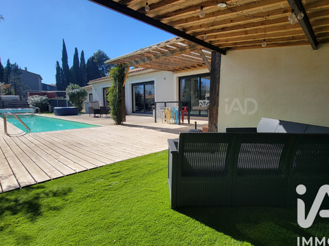 iad France - Aurore Collette vous propose: *** VILLA de PLAIN PIED 166 m² - JARDIN arboré de 1727 m² - PISCINE 15,20 x 2,70m - JACUZZI - CHAMBRES DONT 1 SUITE PARENTALE - 2 WC - 2 SALLES D'EAU - GARAGE - CLIMATISATION - LUMINEUSE - SOUS GARANTIE DECENNALE - TERRASSES - HORS LOTISSEMENT ***
