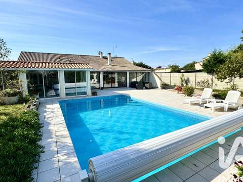 Cette maison de plain-pied non mitoyenne offre un espace de vie, intérieur comme extérieur, spacieux et confortable pour toute la famille, au calme mais à proximité de tout. Elle se compose de pièces de vie spacieuses avec son séjour lumineux avec cheminée de 42m2, et un salon de 40m2 avec poêle à granules et climatisation réversible. Une véranda de 20m2 environ, avec vue plongeante sur la piscine, possède également la climatisation réversible et fait guise de cuisine d'été. La cuisine de la maison de 15m2 est récente (5 ans) et entièrement aménagée avec son cellier qui vient compléter cet espace.