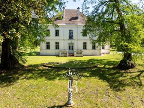 A 15 mn de l’océan, à proximité immédiate du village, magnifique propriété de 4,5 ha bordée par un ruisseau. Elle se compose d’une belle demeure XIXème d’environ 400 m² habitables, d’une grande dépendance, d’un garage et d’une petite maison typiquement landaise à rénover. La maison de maître offre des volumes harmonieux où se marient admirablement charme, histoire et confort moderne. Le rez-de-chaussée comprend une entrée, un salon, une salle à manger, un grand couloir traversant, une cuisine et arrière-cuisine, une chambre, une salle de bain, une chaufferie et une pièce de rangement. Au premier étage se trouvent une bibliothèque, un bureau, cinq chambres, deux salles de bain/douche. Un deuxième étage abrite un vaste grenier. Le parc d’agrément, entièrement […] Voir l’annonce immobilière >>