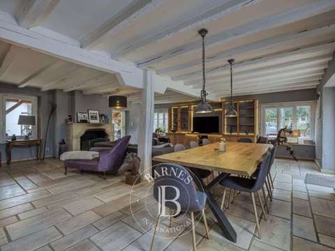 Nichée dans un écrin de verdure à Saint-Genis-Pouilly, cette propriété unique allie élégance, confort et infrastructures équestres de premier plan. Avec plusieurs bâtiments indépendants, dont une bâtisse principale au charme authentique, un appartement en triplex et une habitation rénovée, elle offre un cadre de vie rare et privilégié aux portes de Genève.Une demeure de caractère aux volumes généreux.La bâtisse principale se distingue par ses volumes harmonieux et ses prestations de qualité. - Le rez-de-chaussée s’ouvre sur un hall d’entrée avec penderie, un cabinet de toilettes et un vaste espace de vie composé d’une cuisine équipée ouverte sur le séjour avec cheminée en pierre. - À l’étage, un dégagement mène à une salle de douche avec WC, une petite chambre, ainsi qu’une superbe suite parentale avec grand dressing et salle de bains complète (douche à l’italienne, baignoire et double vasque). Un bureau ouvert donne accès aux combles mansardées et aménagées, où se trouvent deux chambres, un dressing/salon, une salle de bains avec WC. - Le sous-sol propose une buanderie avec sanitaire, une cave à vin, ainsi que plusieurs pièces de stockage et un grand atelier. Un vestige historique à rénover en totalité, témoin du passé du moulin, confère à cette demeure un cachet indéniable. - Un appartement en triplex, indépendant, complète cette partie de la propriété. Il comprend une cuisine équipée, un salon avec salle de douche et WC au premier étage, et une chambre mansardée au second étage. - Séparée et indépendante, idéale pour du locatif ou pour le plaisir d'accueillir des amis ou de la famille, une 3ème habitation en duplex offre une cuisine équipée, un salon en mezzanine avec un espace nuit et une salle de douche WC. Un garage complète ce logement. Un cadre extérieur exceptionnel pour passionnés d’équitation.De belles infrastructures équestres sont conçues pour offrir un confort optimal à vos chevaux. La propriété dispose de huit box spacieux, d’un espace de soin, d’une […] Voir l’annonce immobilière >>