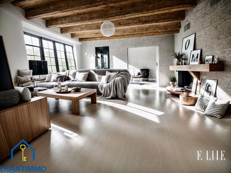 Au rez-de-chaussée, la cuisine, lumineuse, avec un cellier de 60 m². Une grande pièce de réception.